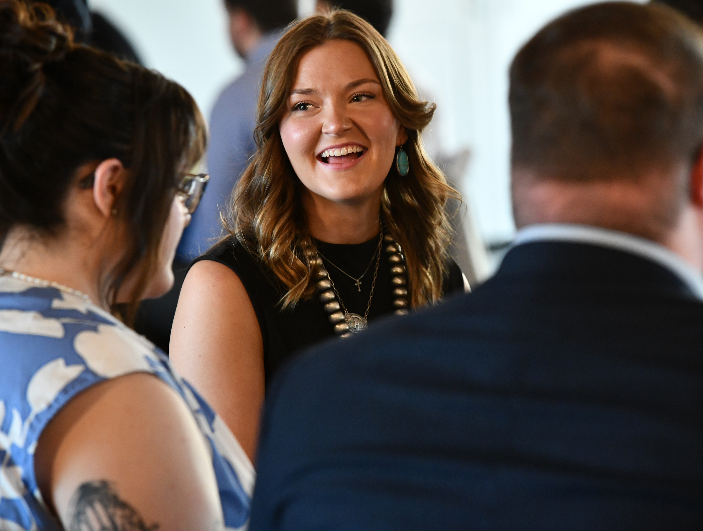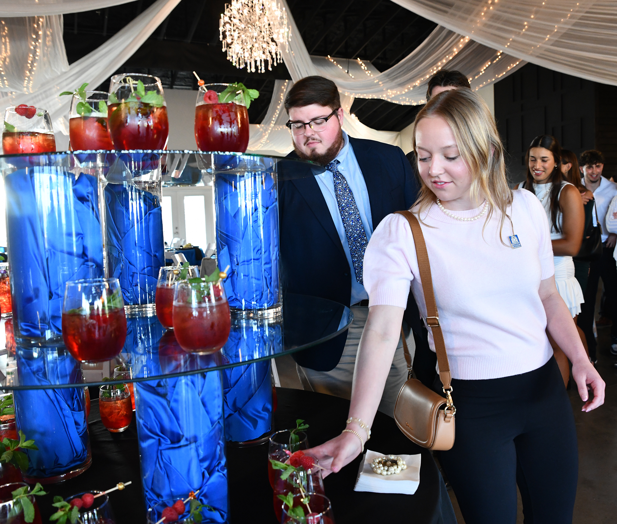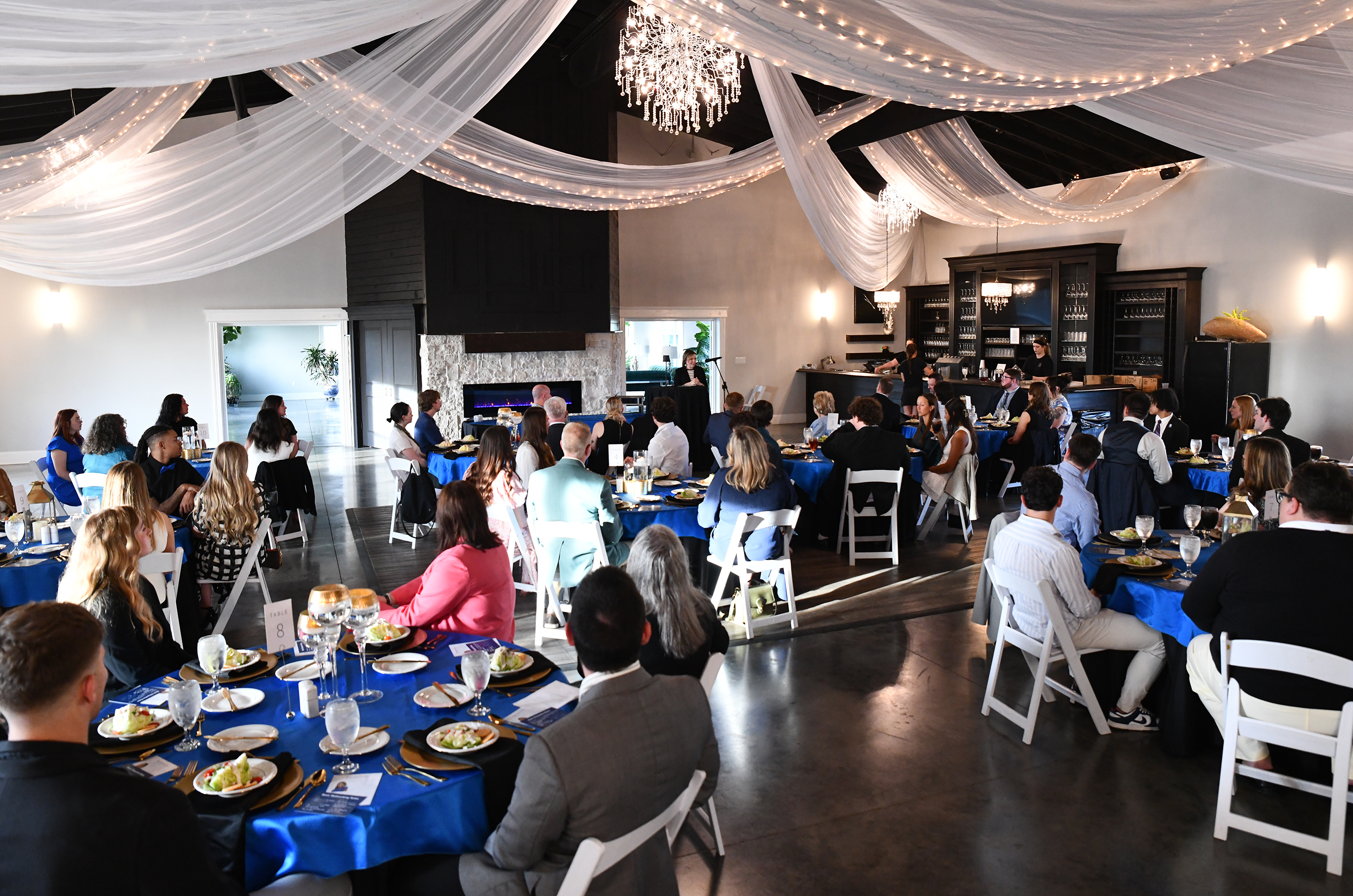 The evening opened with business and communication professors teaching students the subtle art of business networking during a happy hour of mocktails and hors d'oeuvres on a patio. Then they moved to an indoor business dinner, where students were instructed how to navigate a place setting as well as a table conversation.