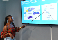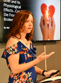 Stella Kwagala '26, a nursing major from Uganda, gave a talk about leukemia because she watched her late mother, Agnes Namulemo, die after being ravaged by the disease. Loss of a close family member also inspired research by MaCayla Falls '25, who presented "Grief and Its Physiological Effects Can You Die From a Broken Heart?" Her father, Matt, died earlier this year after being diagnosed with cancer last summer.
