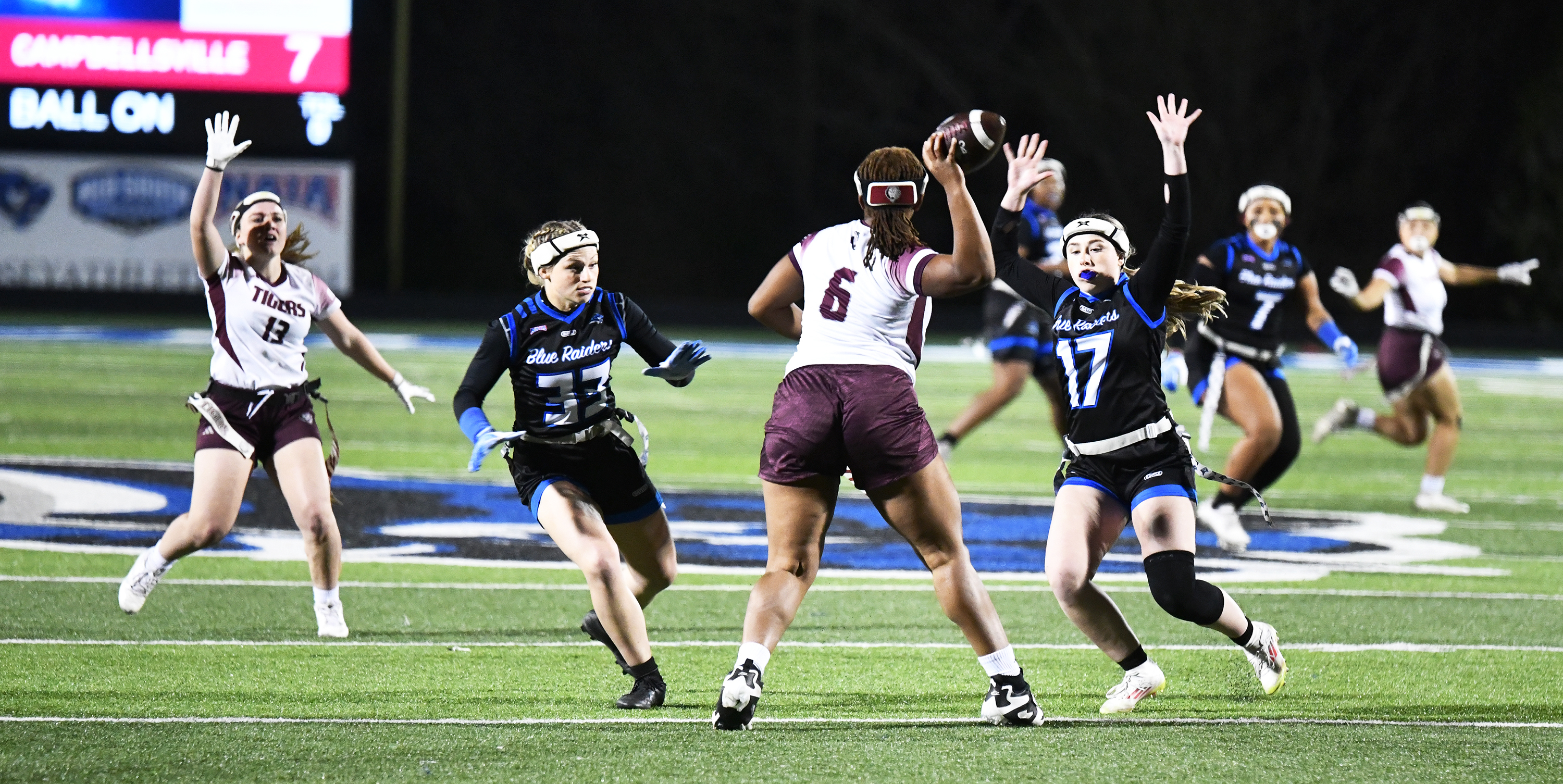 Blue Raiders never trail in inaugural Battle of Highway 55 flag football game; LWU improves to 4-1 overall.