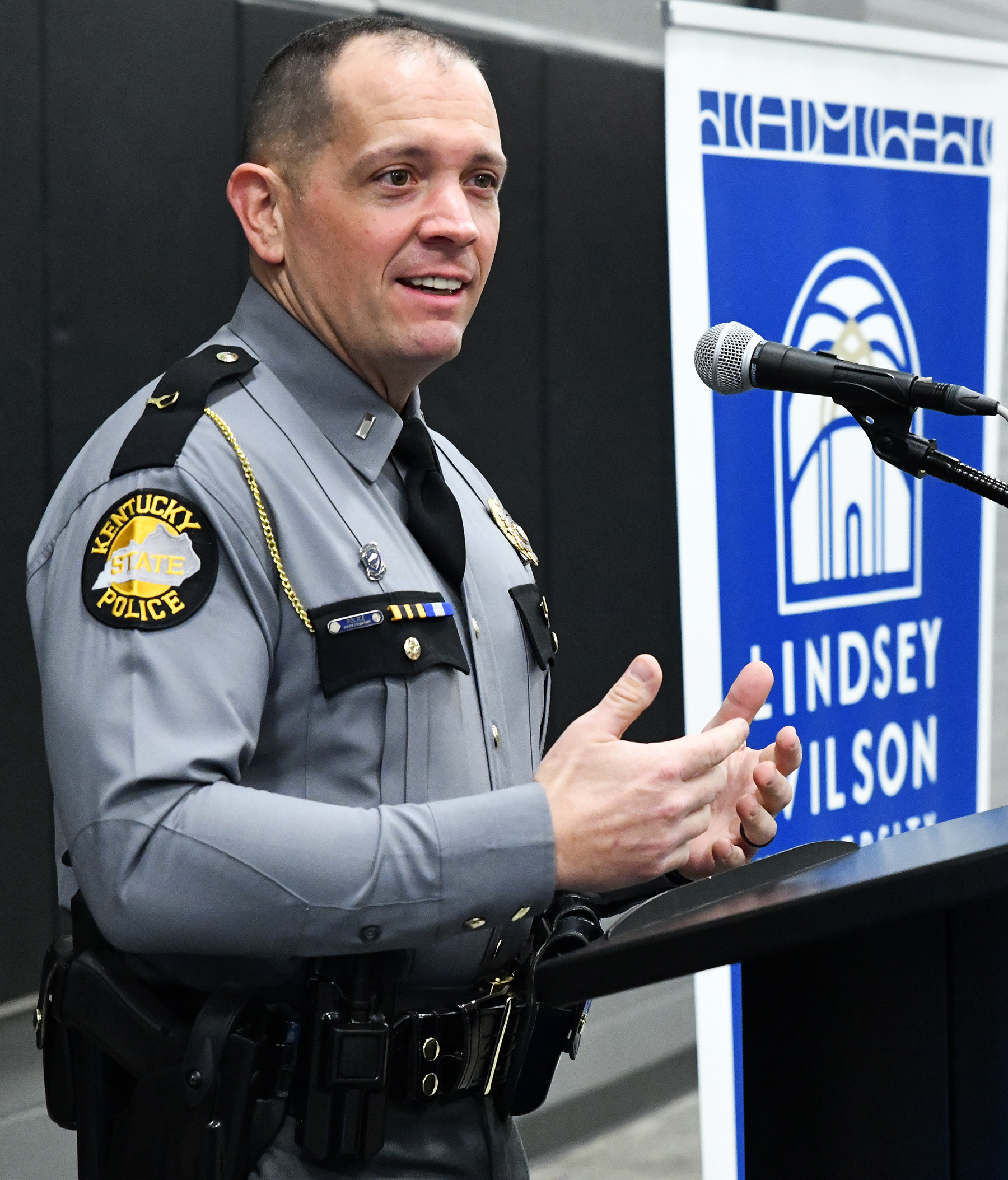 "The interactions I had and the relationships I built at Lindsey Wilson completely changed my career trajectory," said Hedgespeth, a Green County native who is a fourth-generation police officer and a second-generation Kentucky State Police trooper. "For Kentucky State troopers and other staff to take the opportunity to impact their career trajectory, to further their education, is a great thing."