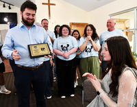 In addition to a plaque, Burton was presented a commemorative T-shirt, which was given to all of those in attendance. And a special commemorative T-shirt was made for the son that she and her husband, Chase, will welcome in June.