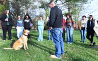 Students in counseling professor Mahalia Cain's "Substance Abuse" and "Abnormal Psychology" classes watched Cally, the Columbia Police Department's K9 unit, enthusiastically and joyfully demonstrate her acute sense of smell for them in the parking lot behind the university's Biggers Sports Center.