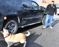 Cally's handler, Sgt. Trevor Foster, planted contraband in several places to illustrate the canine's powerful and impressive olfactory sense. Each time, the blonde 7-year-old Labrador Retriever needed less than 30 seconds to sniff out contraband, no matter where Foster had hidden it -- under a vehicle or inside of a box.