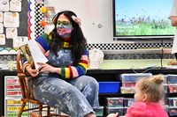 Katrina Bailey '26 of Glasgow, Kentucky, entered Lindsey Wilson as a nursing major, then soon realized her professional calling was in the classroom instead of health care. Bailey, who dressed as the character Camilla Cream from the children's story A Bad Case of Stripes, said each group of students she worked with during Read Across Adair County responded differently to the book.