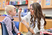 Stearns, who reckoned she would paint more than 50 children's cheeks or foreheads during the two-hour event, said she "loves interacting with all the kids and their families."