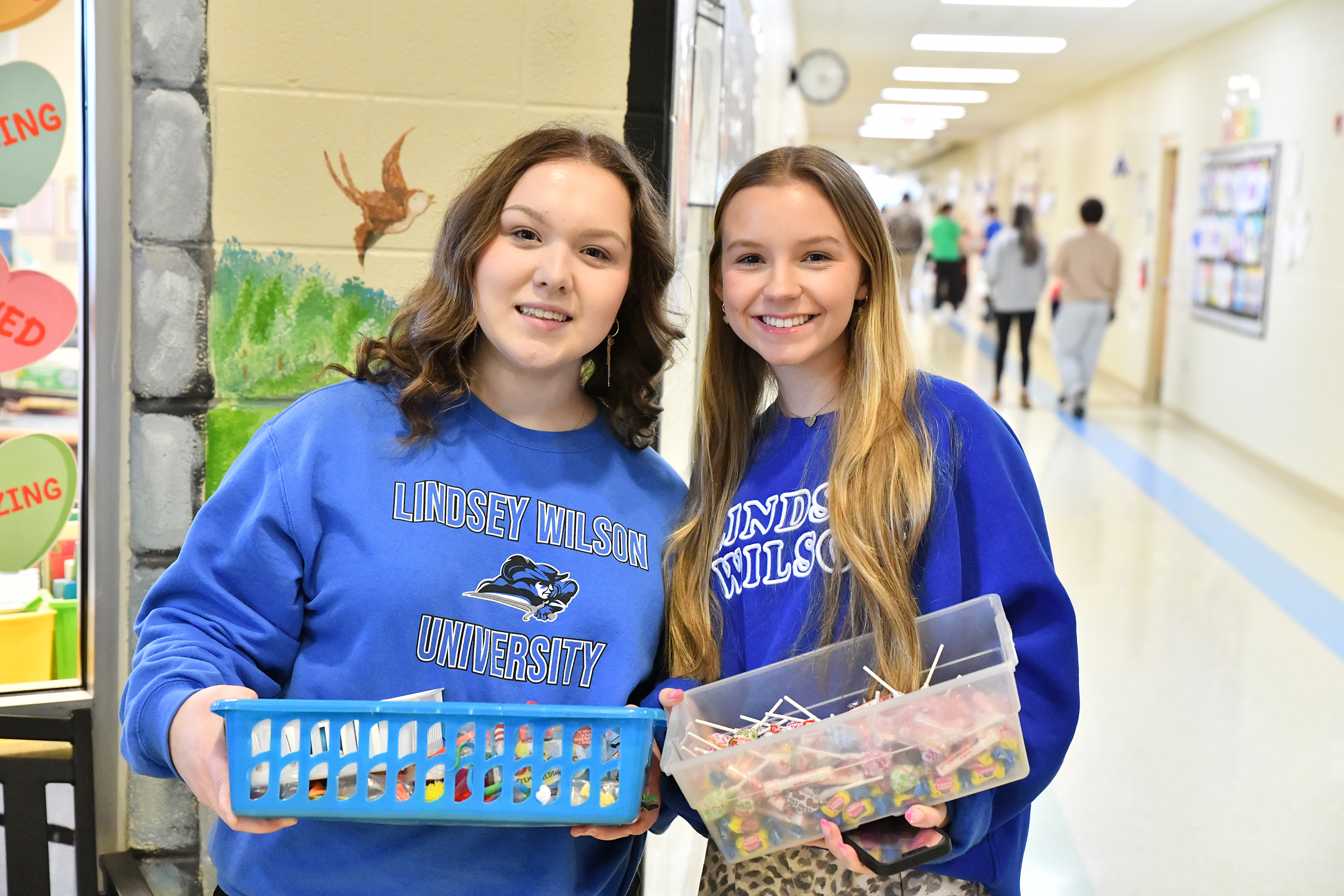COLUMBIA, Ky. (02/27/2026) — Kaylei Neat and Hailey Rowe remember what it was like to be first-graders who were enchanted and entertained when Lindsey Wilson University students visited Adair County schools to celebrate Read Across Adair County.