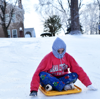 Jenesis Bowling '29 was another LWU student who enjoyed the thrill and excitement of sledding down the hill behind Keefe Hill. She said the experience "was great, but halfway through the sled was not under me."